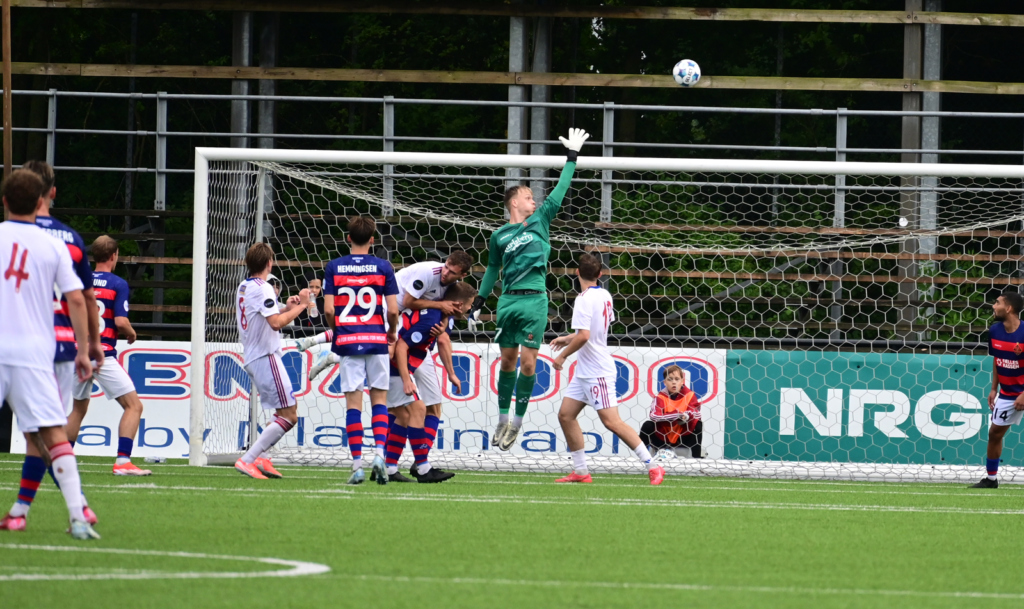 Efterfølgende kom Sundby til et par chancer, men FREM fik den største da Nicholas Sejr hamrede bolden på den ene opstander.