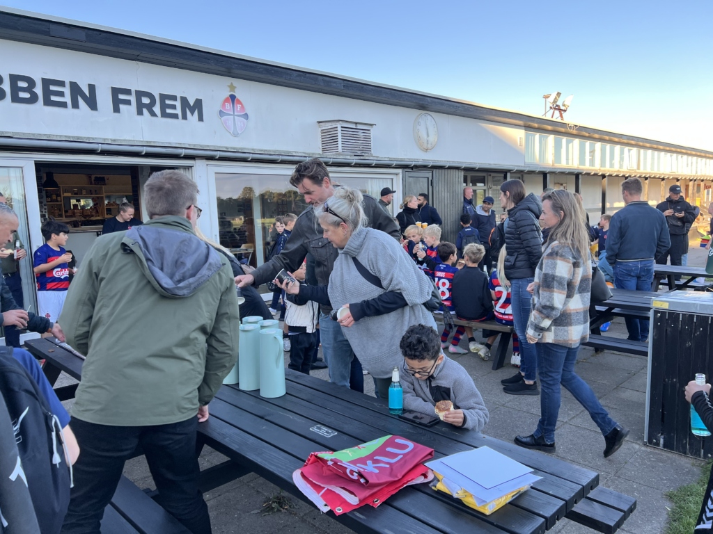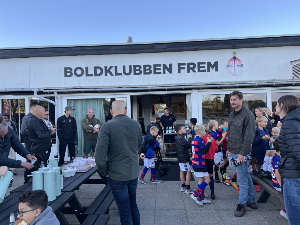 Børnene blev budt på en rød/blå Frem-vand og et stykke kage fra Café Frem, mens der var en kop kaffe at lune sig på for de voksne, alt imens at vores officielle DBU Børneklubsflag røg til tops i flagstangen til tonerne af børnenes “BK Frem” tilråb.