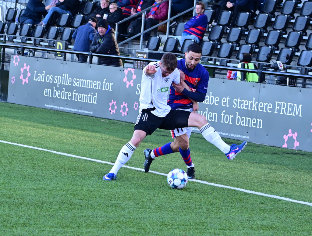 Vanløse lurede mest på kontraangreb, og efter små 20 minutter var angriberen Patrick Allentoft ved at komme igennem på sådan ét.