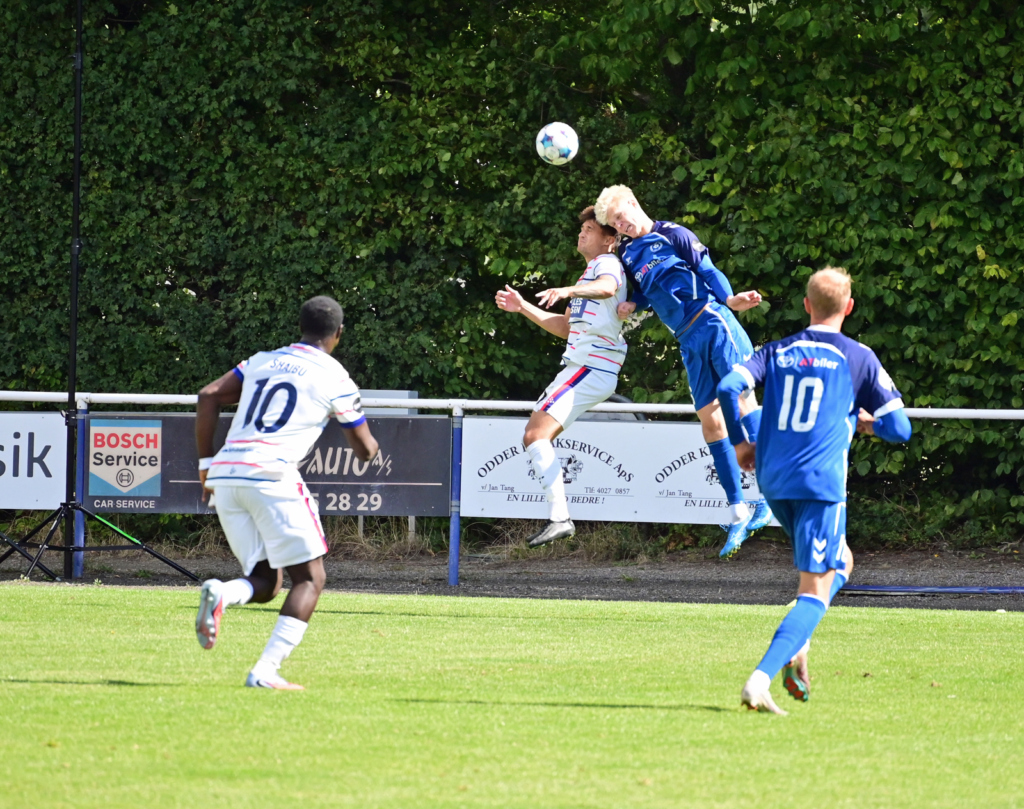 Odder forsøgte at presse FREM, men det lykkedes ikke rigtig dog havde de en stor mulighed i overtiden, men afslutningen sad lige i favnen på Tobias Søderstrøm.