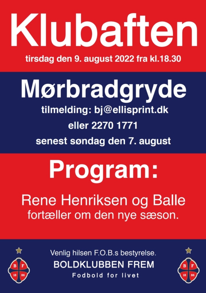 Klubaften 9. august – se mere her