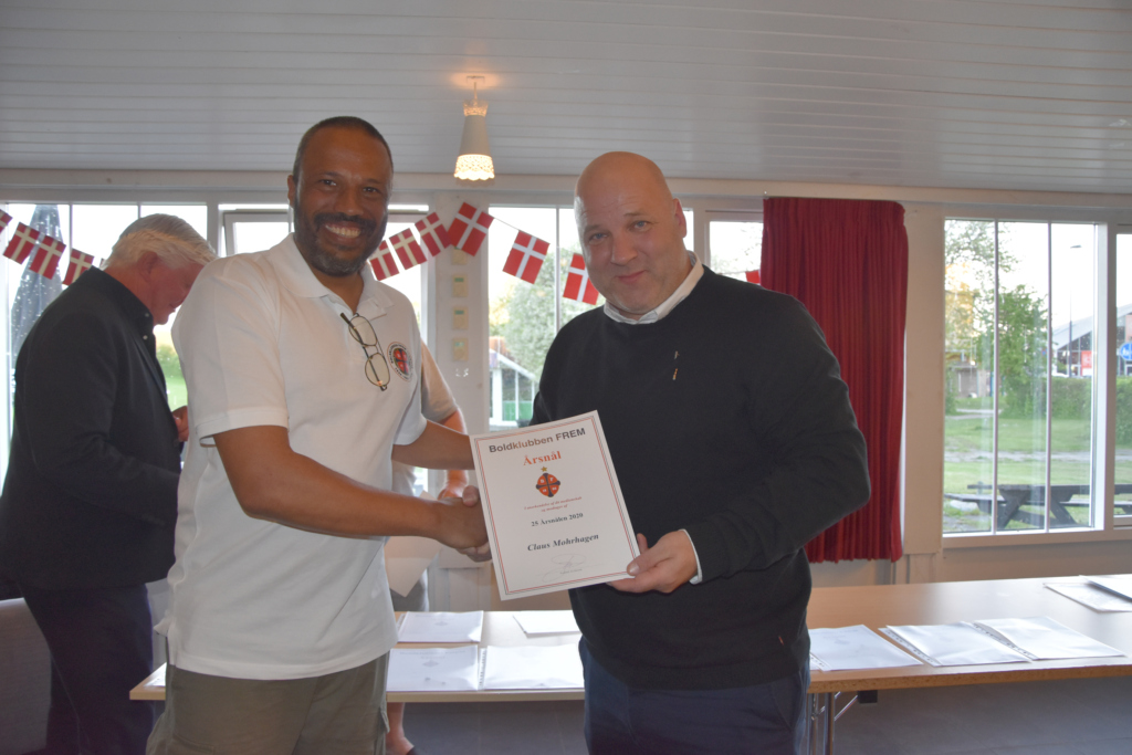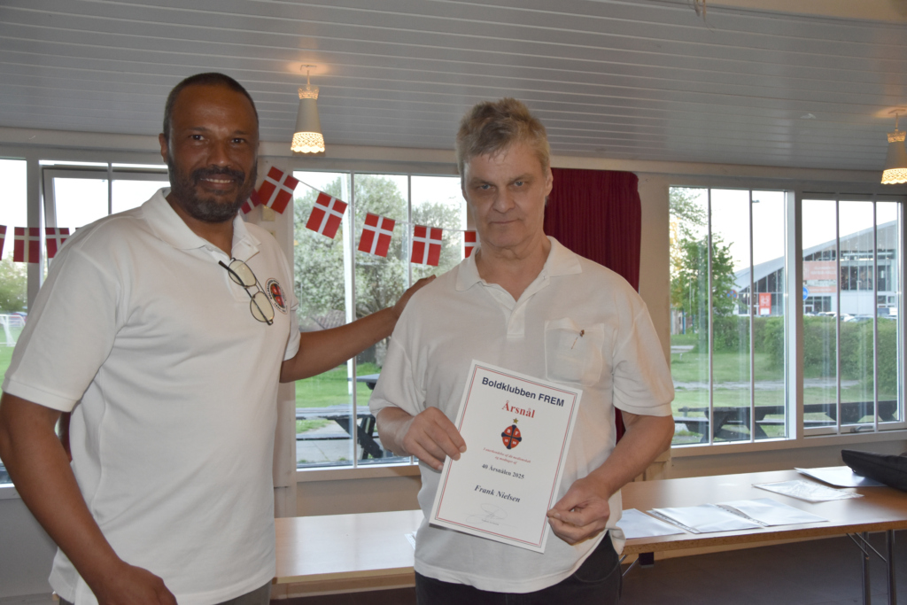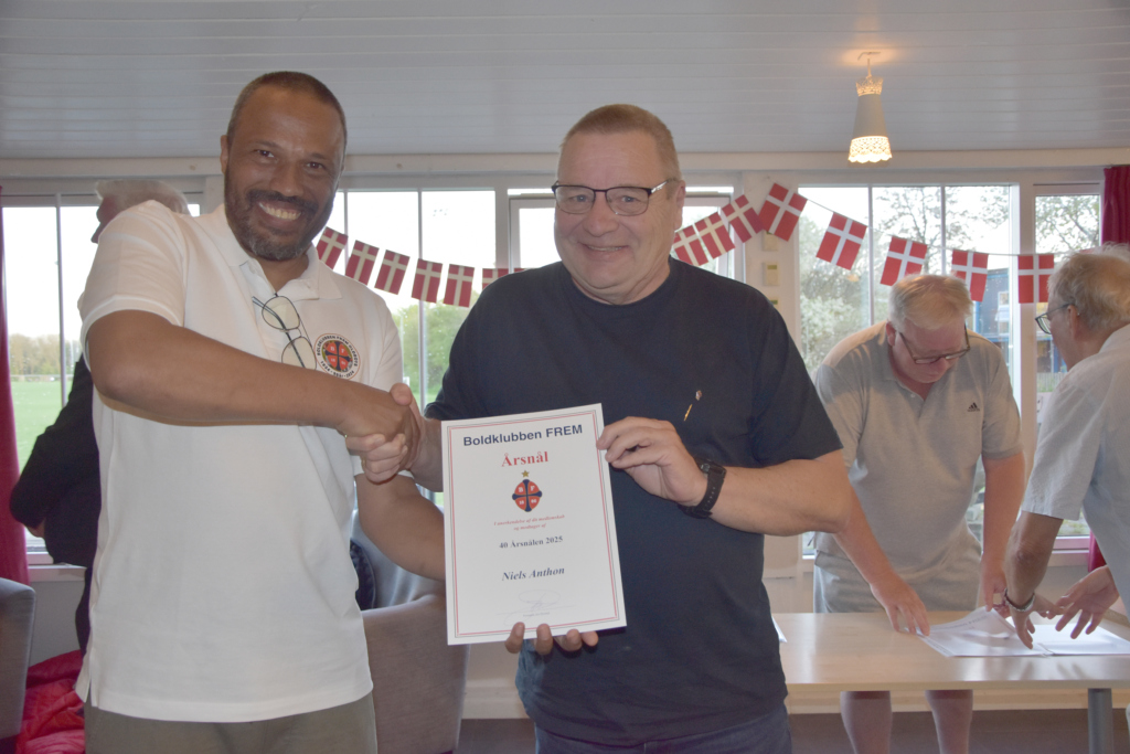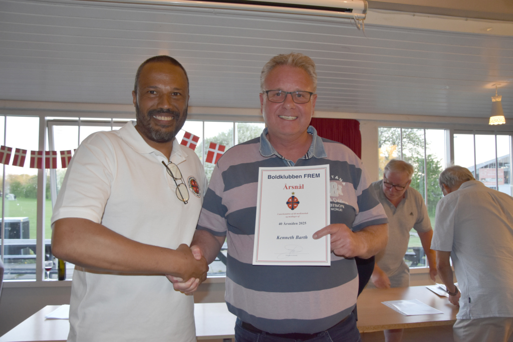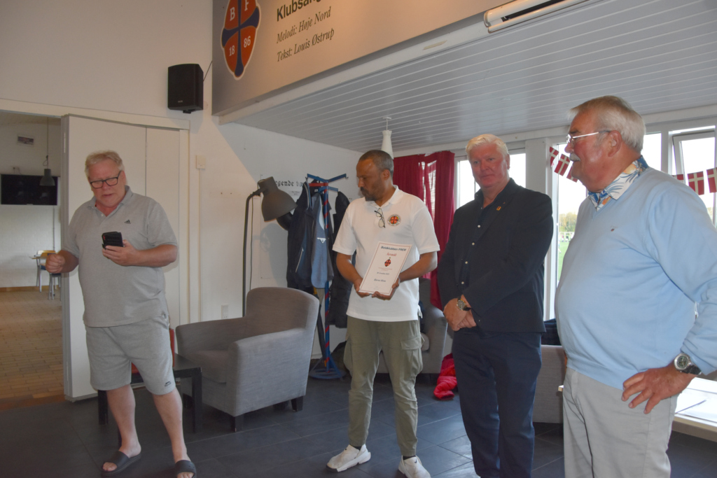 Nålene blev uddelt ved 25 år – 40 år – 50 år – 60 år og en 75 års medalje til vores legendariske målmand Leif Bernhard Nielsen, som desværre ikke kunne deltage. Men Per Wind holdte en flot tale for ham, da det jo er Pers forbillede.