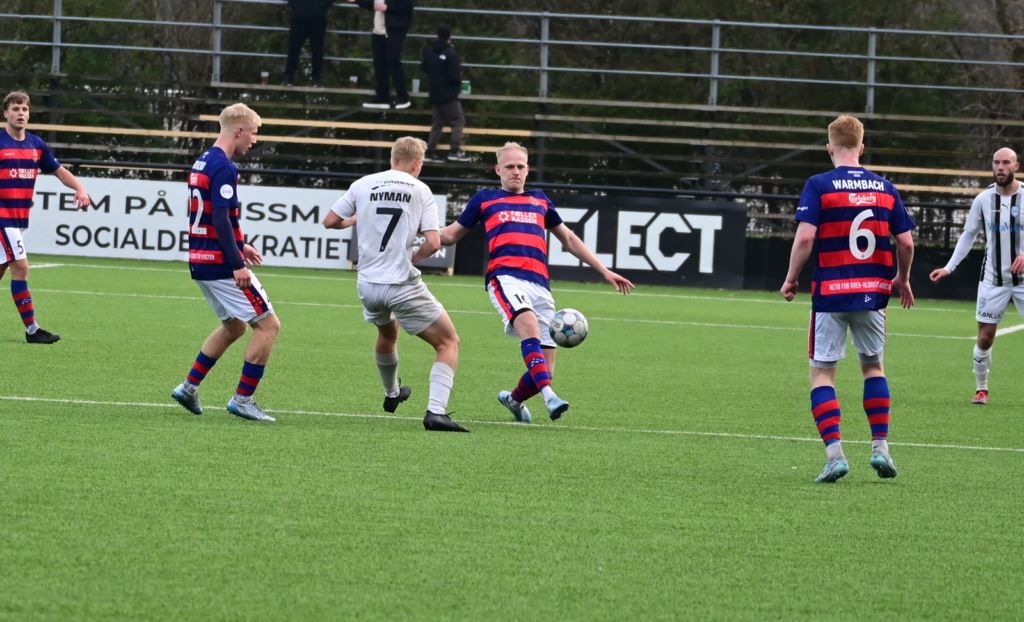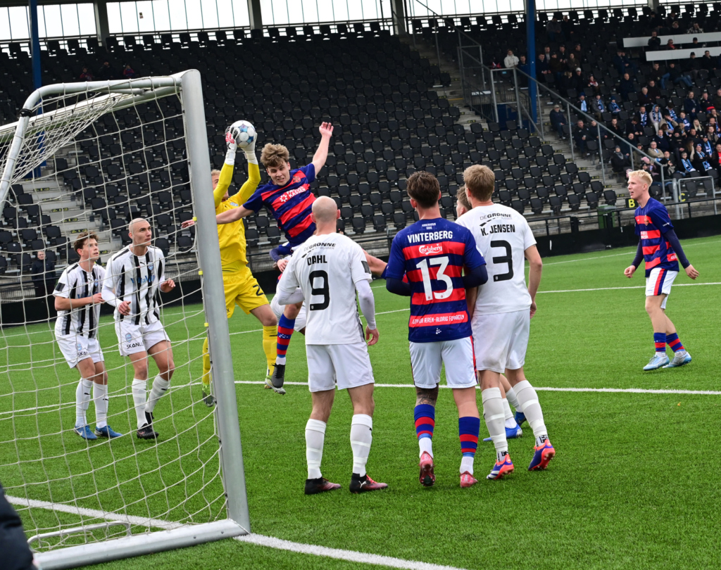 Tre minutter senere brændte det noget på i FREM’s straffesparksfelt – uden at det kom til den helt store chance til NFC ved den lejlighed. Efter flere forsøg lykkedes det for hjemmeholdet at få sendt bolden ud af farezonen.