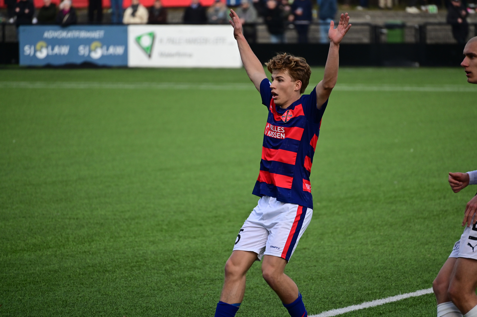 Kort tid efter ville FREM meget gerne have haft straffespark, da Marco Vinterberg på en lang fremlægning faldt omkuld i det kriminelle felt. Kampens dommer, Daniel Kühn Christiansen, vinkede afværgende, men selv uden FREM-briller på så det nu ud som om, de tværstribede havde en sag.